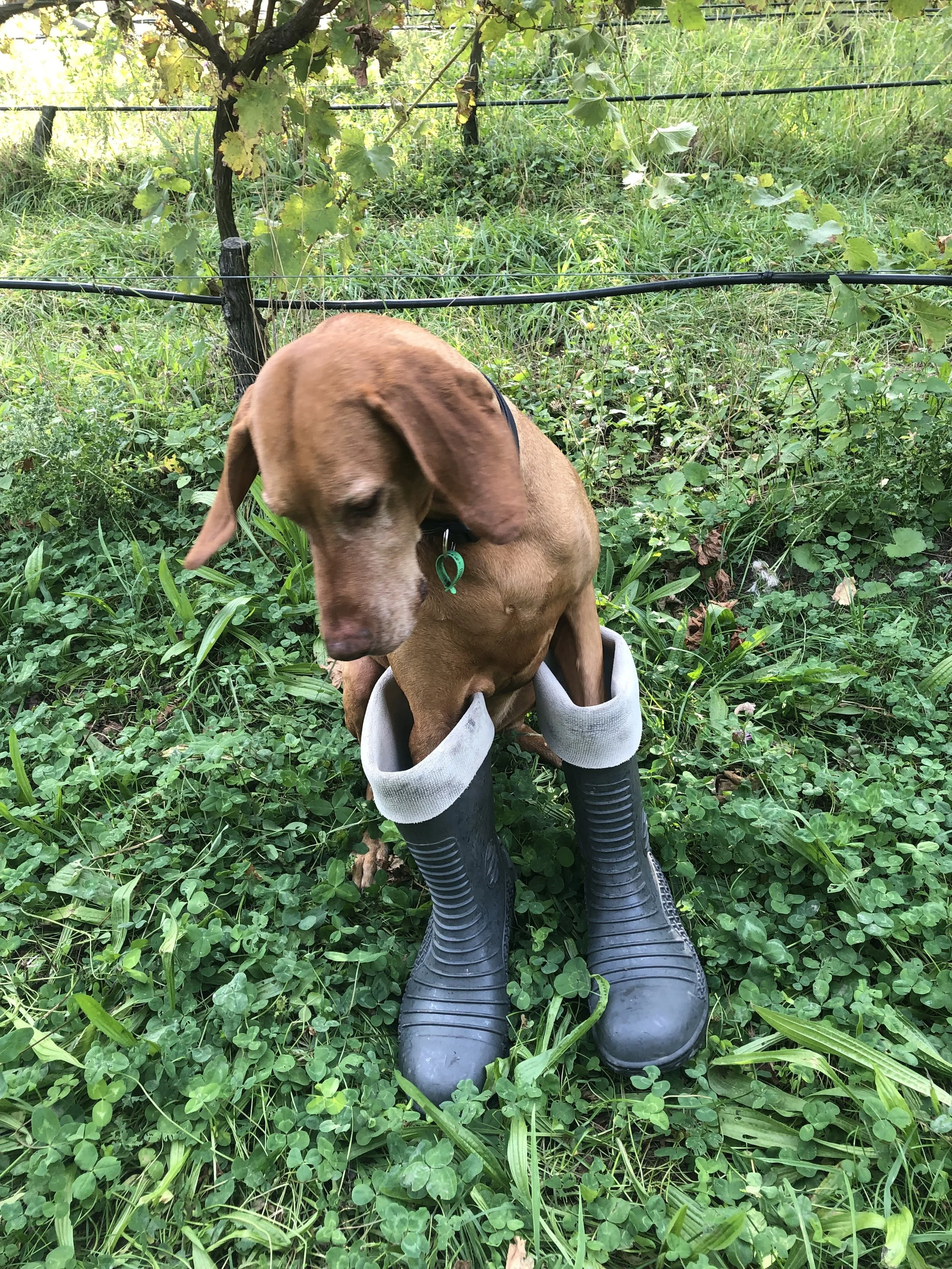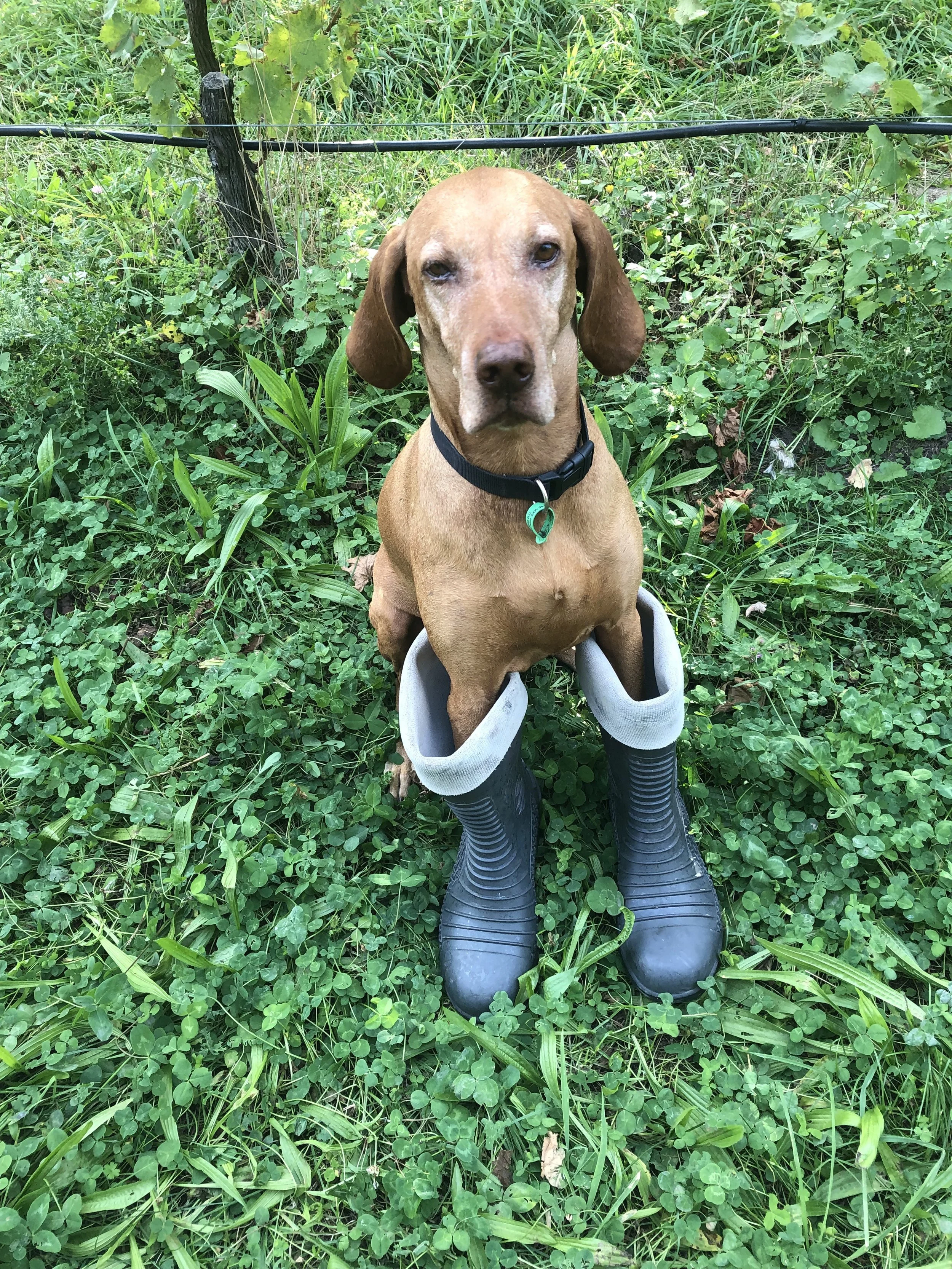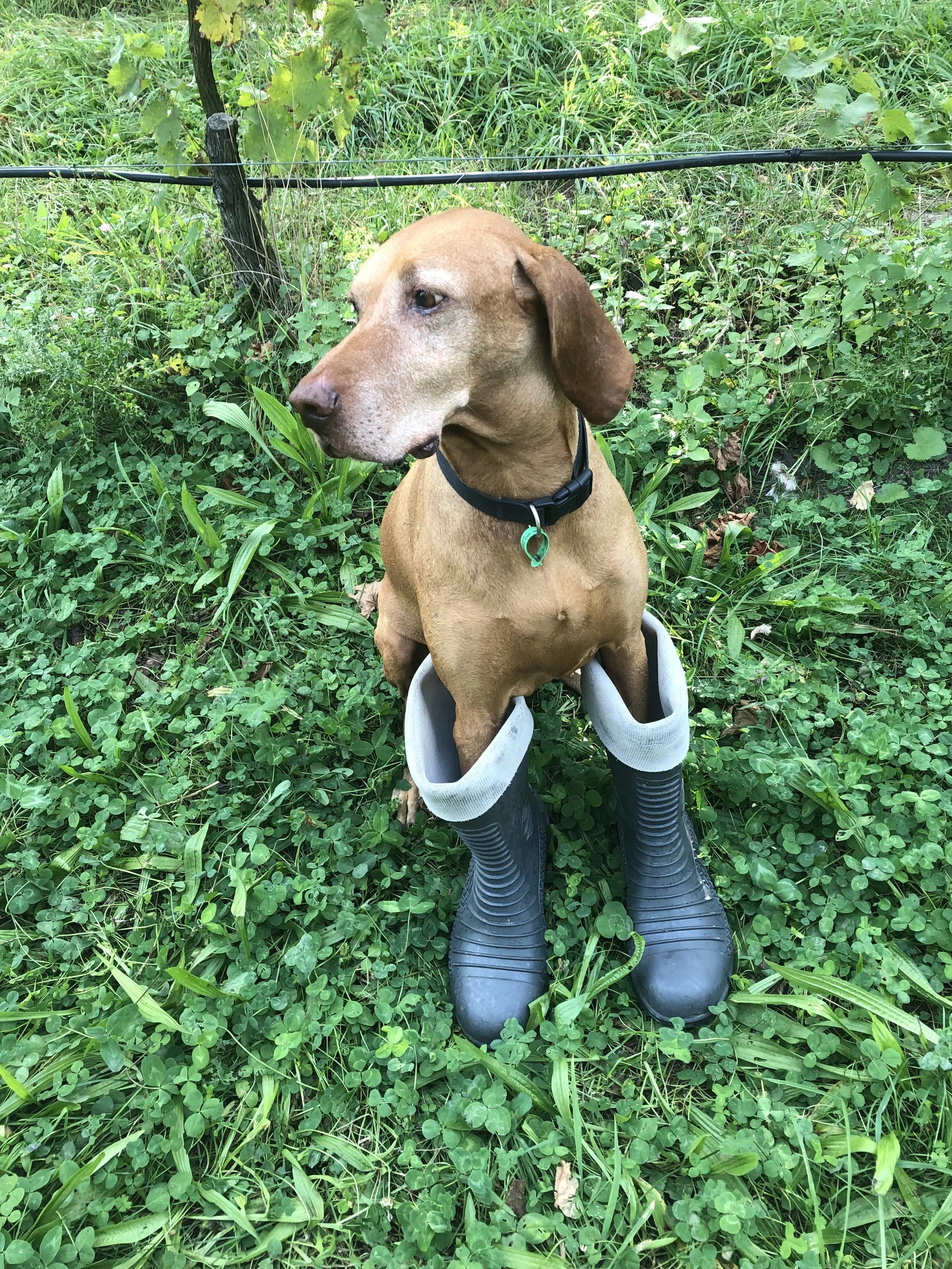 Crosby is Hayden’s right hand man. At home on both the vineyard and at winery, Hayden is not often seen without his old mate next to him. His favourite past times include hunting the local river banks for pheasant and quail, chewing canes at pruning time, sniffing out rabbits and laying around in the sun.